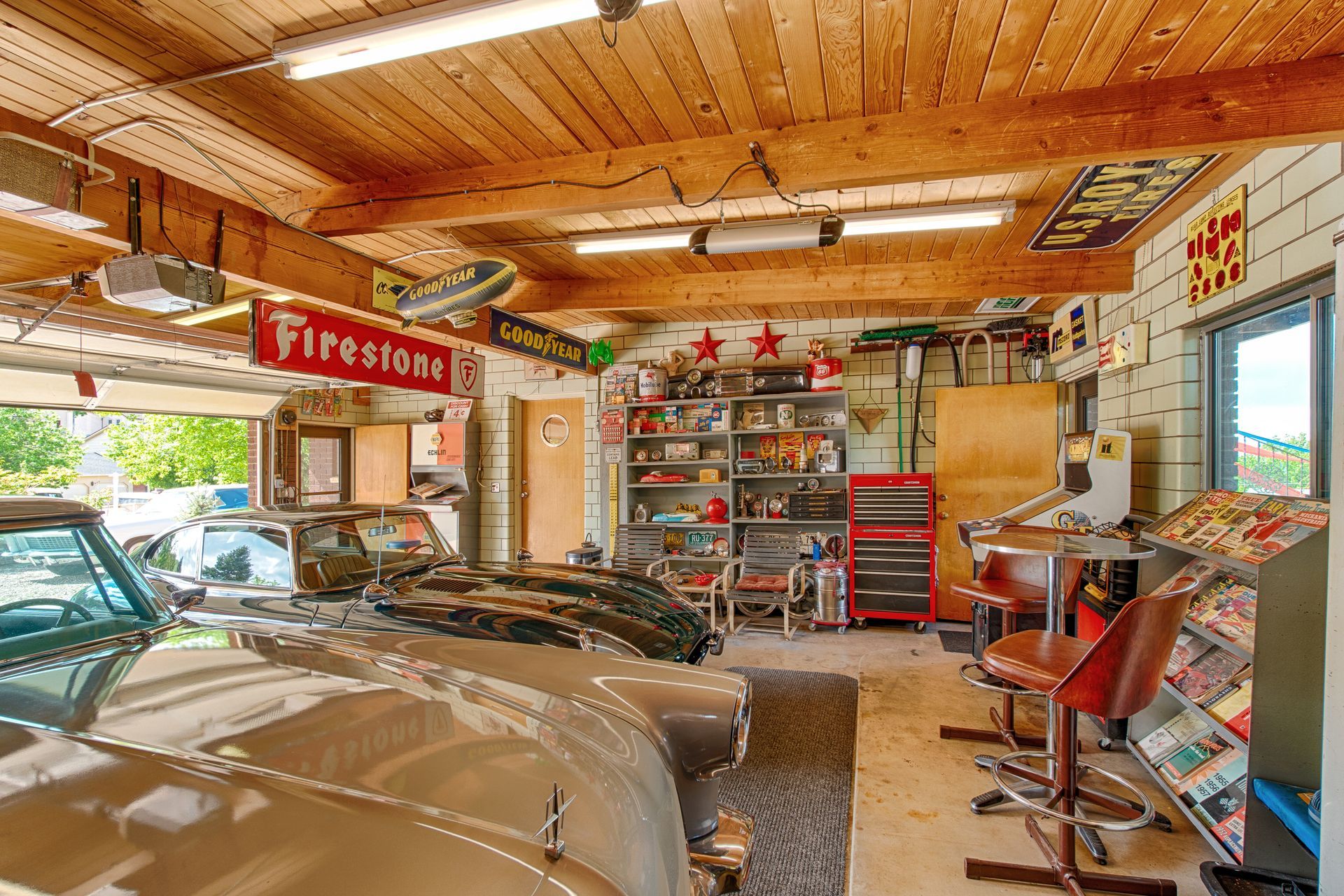 Elegance extends to the oversized two-car garage with glazed block and wood ceilings – even your cars will feel at home here. Easy to care for concrete floors and plenty of natural light provide a showroom experience you won’t forget.