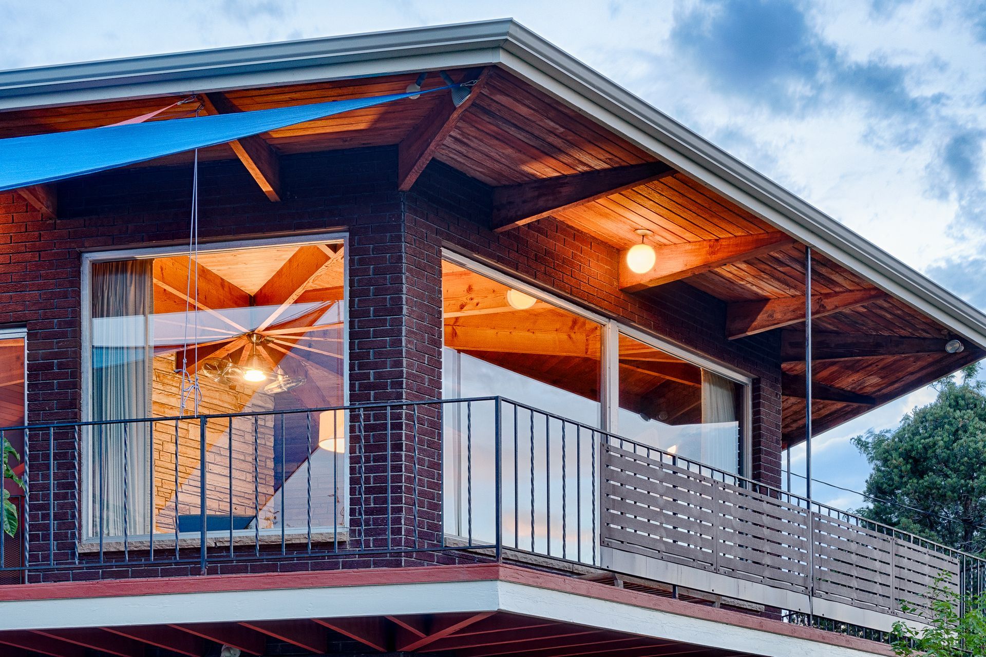 The wrought iron detailing with custom gate crafts a dedicated patio area for eating or entertaining. The oversize yard provides a park inspired feel, continuing the spacious design outdoors as well as in.